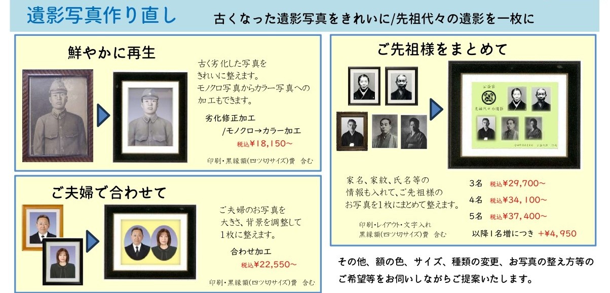 斎場および本社事務所で購入可能ですが、お取り寄せ、受注生産品もあります。