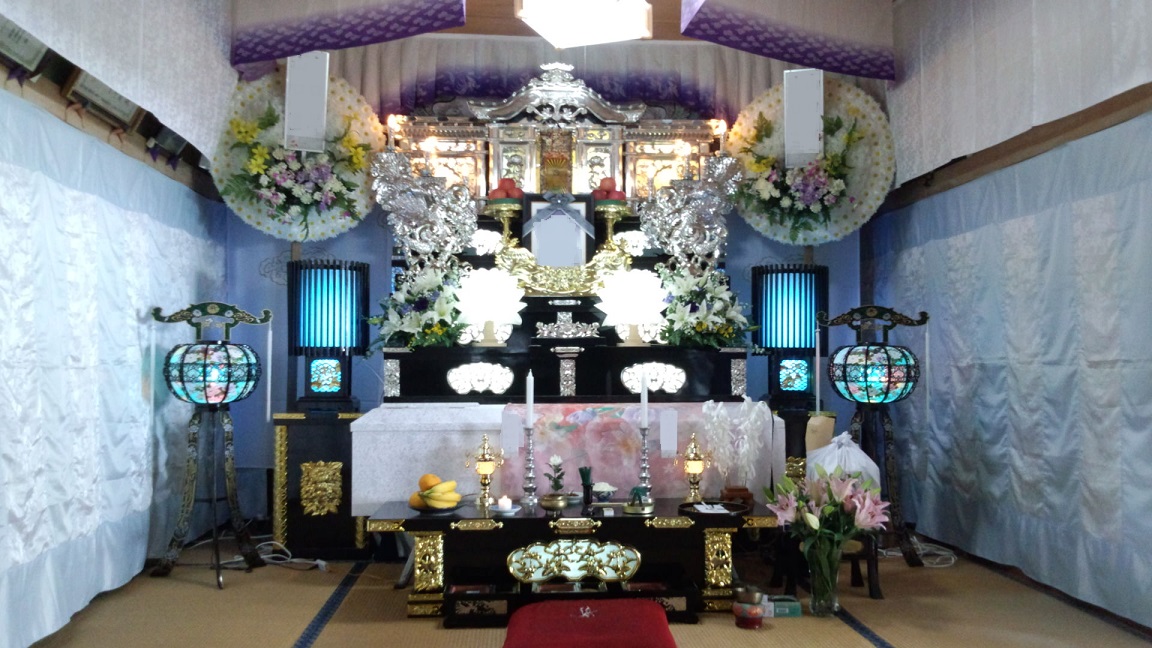 ご自宅での祭壇は祭壇、導師スペースでおよそ8畳1間使用します。