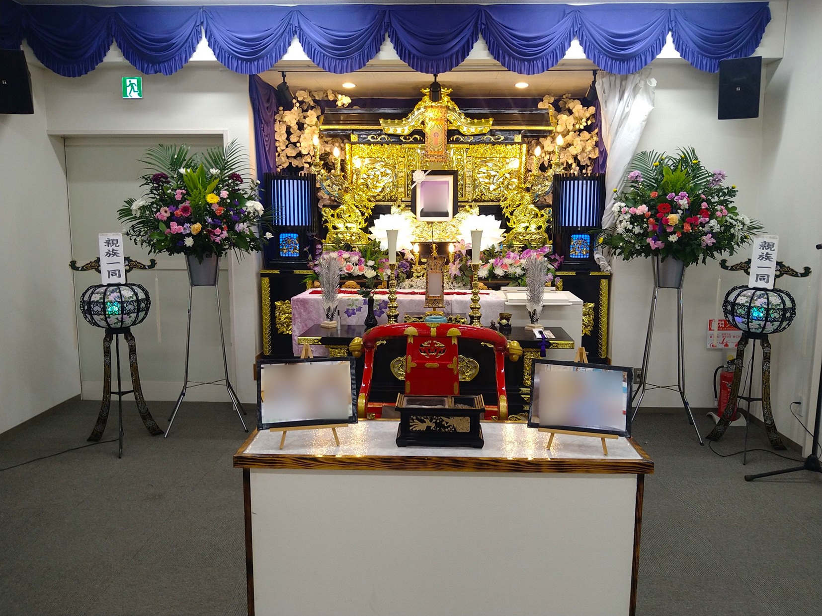 ご自宅での祭壇は祭壇、導師スペースでおよそ8畳1間使用します。